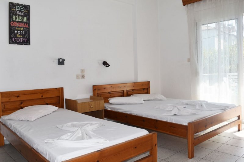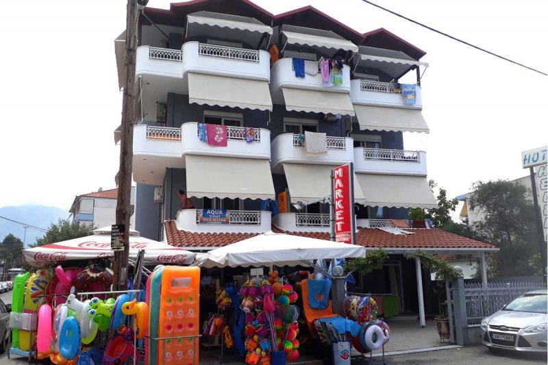 Njena zapadna strana gleda na prelepe obronke planine Olimp. Vila Helena ima 18 soba koje su raspoređene u prizemlju, na prvom, drugom i trećem spratu. Svaka je opremljena kuhinjom sa frižidrom, kupatilom sa TWC-om, klima uređajem kao i TV-om. Klima uređaj se dodatno doplaćuje na licu mesta (7-10€ po danu).